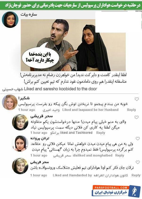 ماجرای درخواست هواداران پرسپولیس از ساره بیات خواهر زن رضا قوچان نژاد برای پیوستن گوچی به پرسپولیس دست مایه یک “کاریکلماتور” شد.