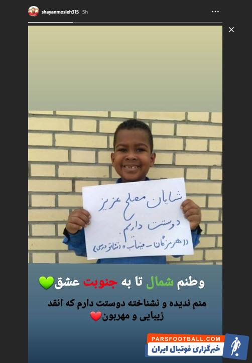 شایان مصلح استوری جدیدی را در اینستاگرام خود منتشر کرد که در آن کودکی جنوبی با در دست داشتن کاغذی به او ابراز علاقه کرده بود .