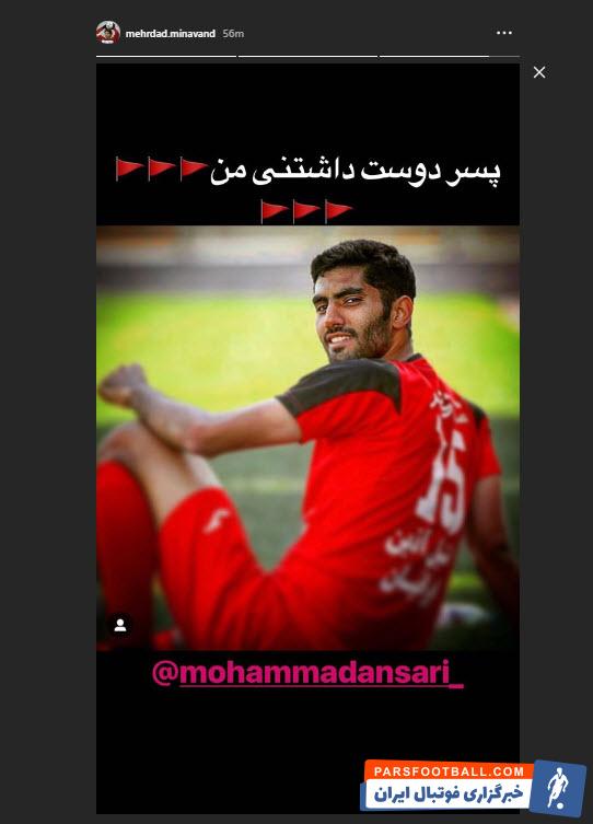 مهرداد میناوند پیشکسوت پرسپولیس استوری جدیدی را در اینستاگرام خود منتشر کرد . او در این استوری با انتشار تصویری از محمد انصاری بازیکن مصدوم پرسپولیس از او حمایت کرد. تصویری از استوری میناوند را در ادامه مشاهده می کنید.