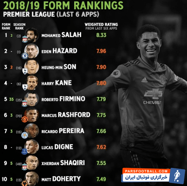 هری کین، فیرمینیو و راشفورد هم در رده بعدی ایستادند.
