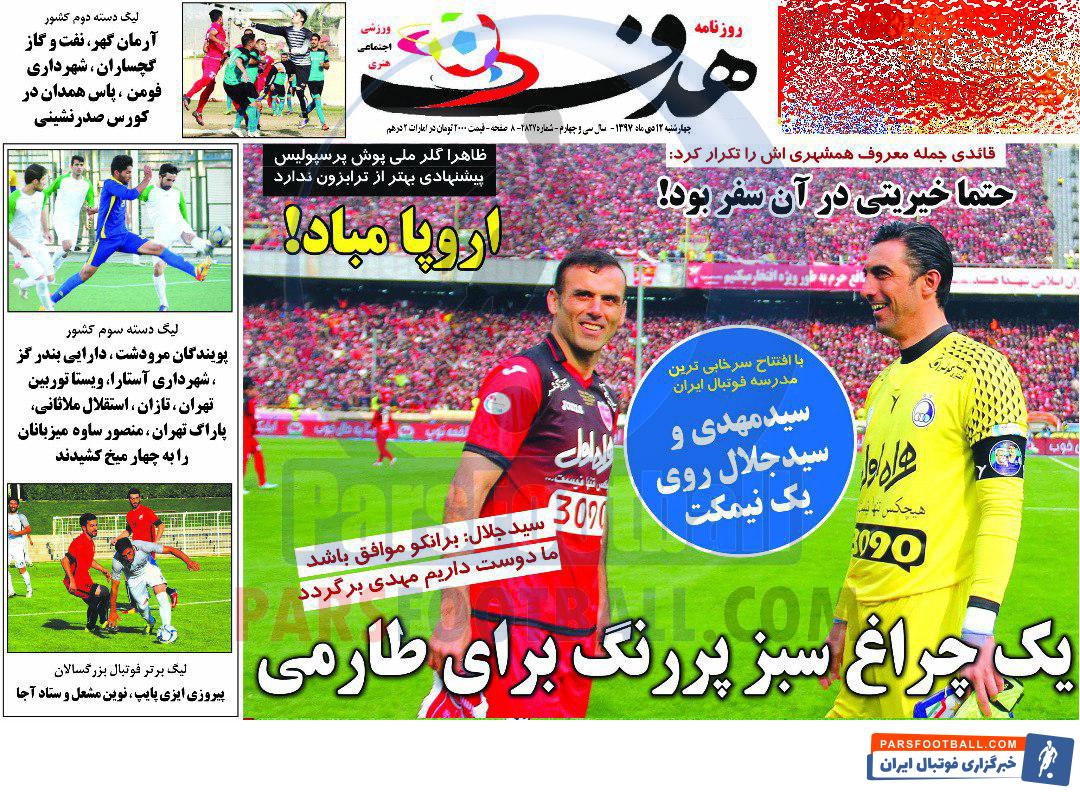 عناوین روزنامه هدف ورزشی چهارشنبه ۱۲ دی ماه به شرح زیر است :