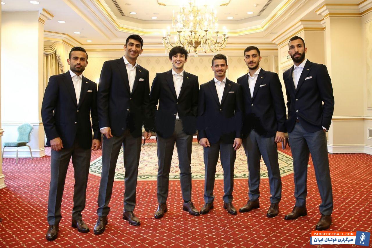 بازیکنان تیم ملی فوتبال ایران با کت و شلوار رسمی با جلوه ای جدید مقابل دوربین ها قرار گرفتند.