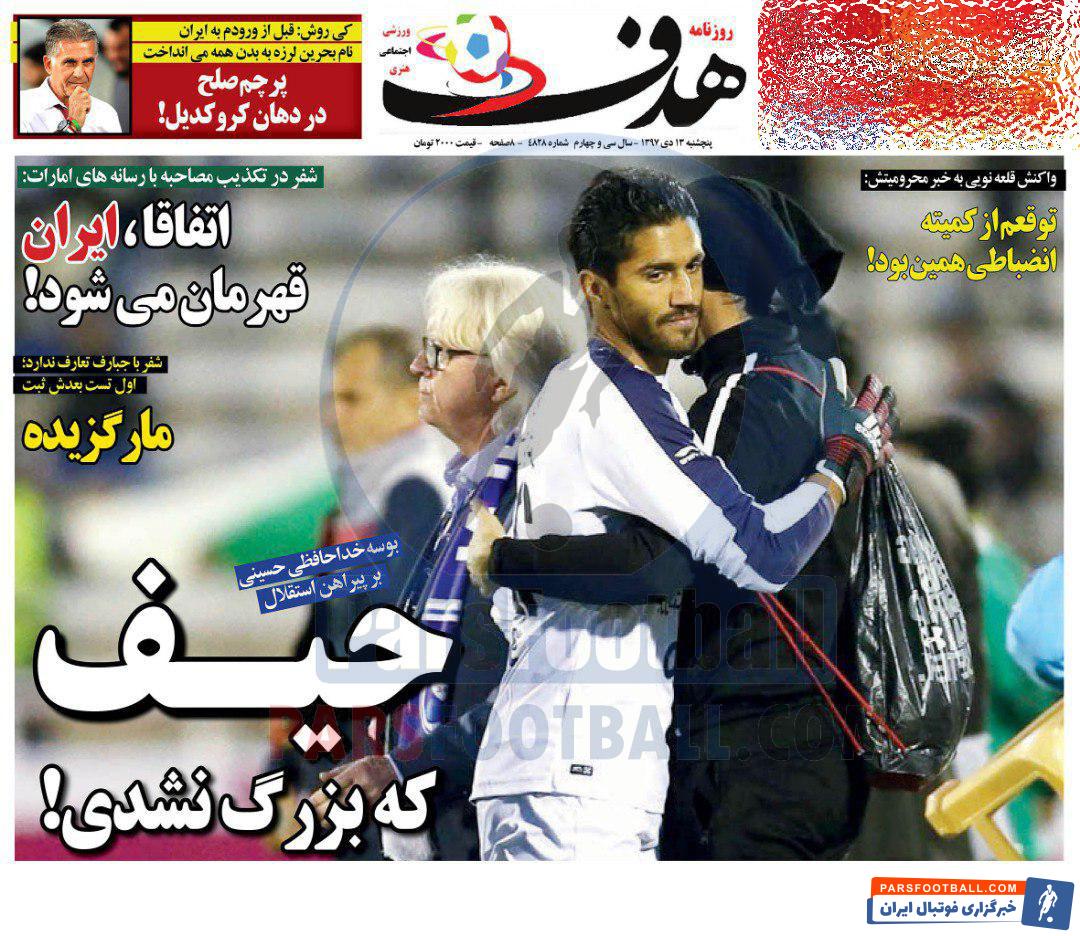 عناوین روزنامه هدف ورزشی پنجشنبه ۱۳ دی ماه به شرح زیر است :