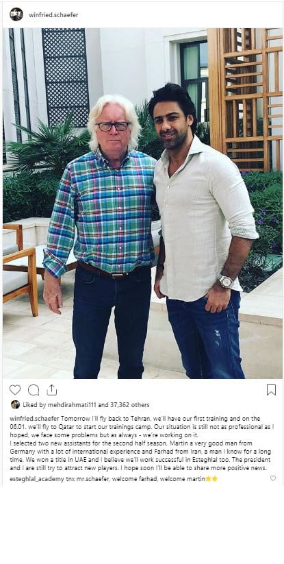 وینفرد شفر با انتشار تصویری از خودش در کنار فرهاد مجیدی به صورت رسمی به خبر حضور او در این تیم واکنش نشان داد .