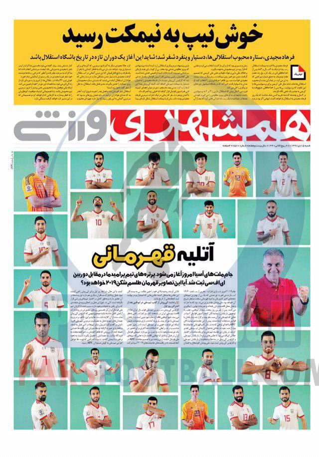 عناوین روزنامه همشهری ورزشی شنبه ۱۵ دی ماه به شرح زیر است :
