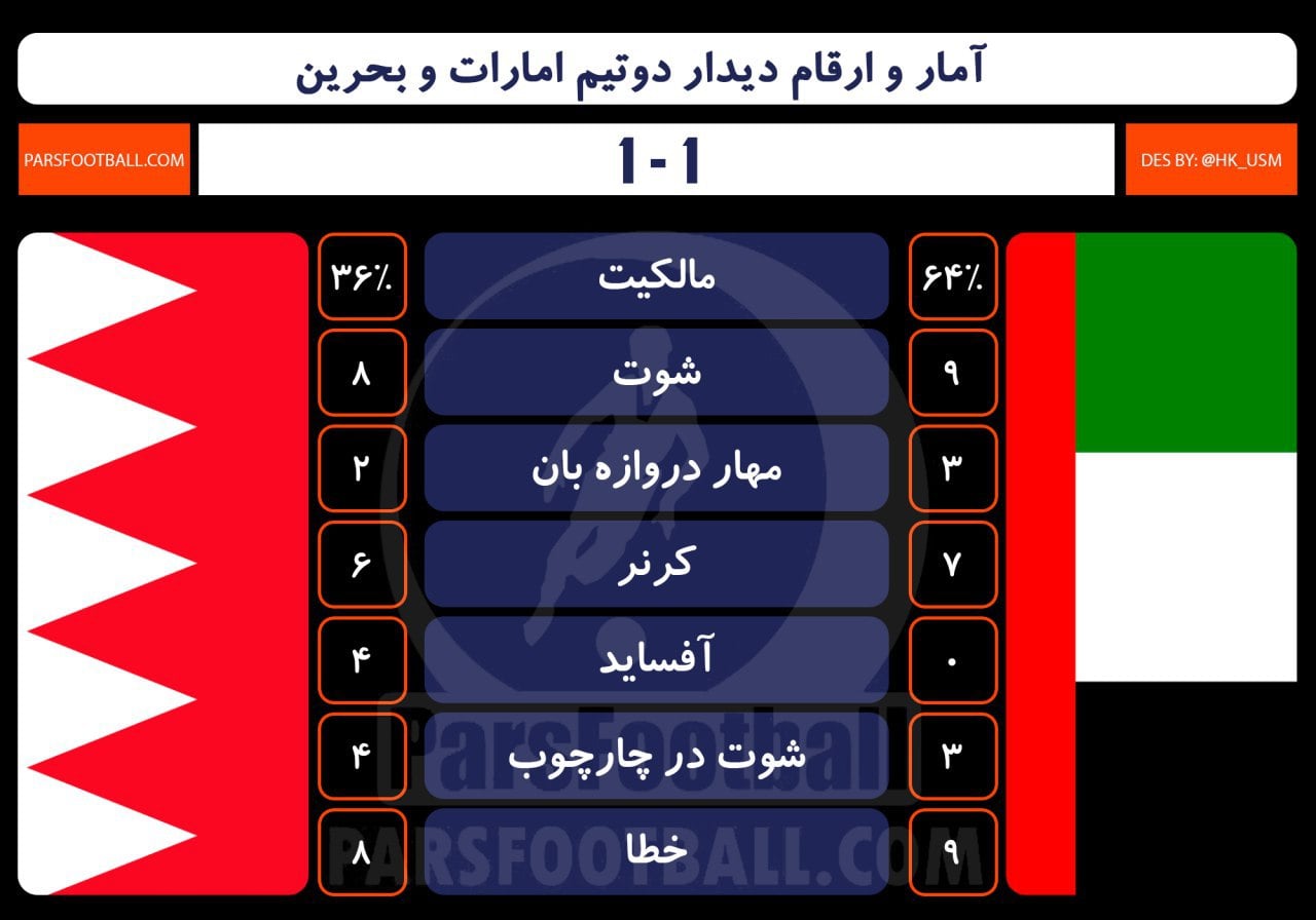 اینفوگرافی اختصاصی پارس فوتبال؛ بررسی آمار دیدار امارات و بحرین در جام ملت های آسیا