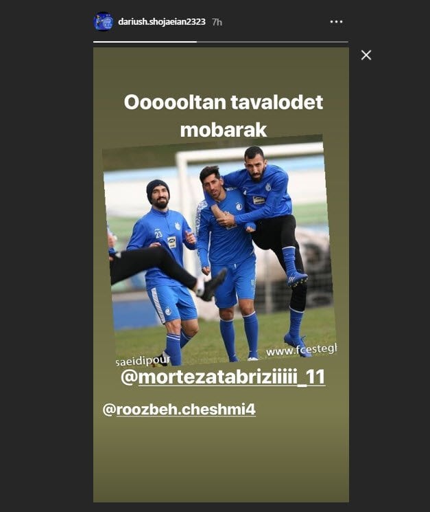 داریوش شجاعیان بازیکن تیم فوتبال استقلال با انتشار یک استوری در اینستاگرام خود تولد مرتضی تبریزی را تبریک گفت . تصویری از استوری شجاعیان را در ادامه مشاهده می کنید.