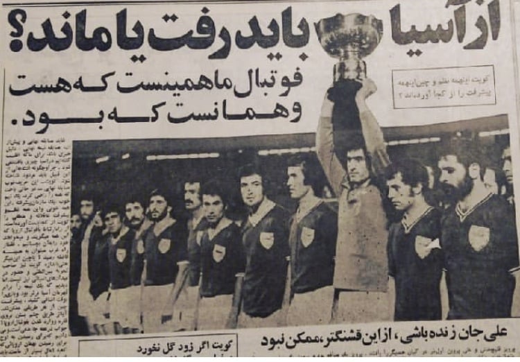 منصور رشیدی سنگربان تیم ملی جام را بالا برده. سومین جام قهرمانی پیاپی آسیایی را… ستاره های دوران فوتبال ایران به صف در دو سویش ایستاده اند و به شکل غریبی همه عبوس و اخمو هستند و خبری از خنده های ته دل نیامده!! با این وصف همین ها آخرین قهرمانان ایرانی جام ملت های آسیا تا امروز هستند… این مطلب بیست و پنجم خرداد ۱۳۵۵ چاپ شده. پس از پیروزی برابر کویت درتهران با تک گل علی پروین.