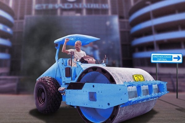 بر اساس این طرح گواردیولا با غلتکی که بر روی آن سوار است از اتحاد به سمت ورزشگاه ومبلی محل برگزاری فینال  رهسپار است.