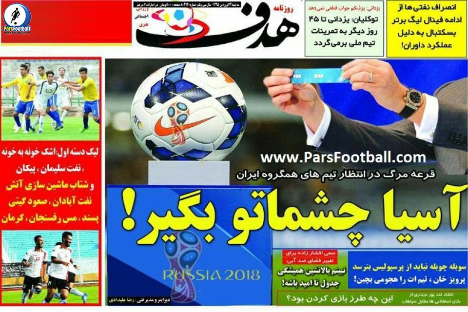 نگاهی داریم بر نیم صفحه نخست روزنامه هدف ورزشی، سه‌شنبه ۲۴ فروردین.