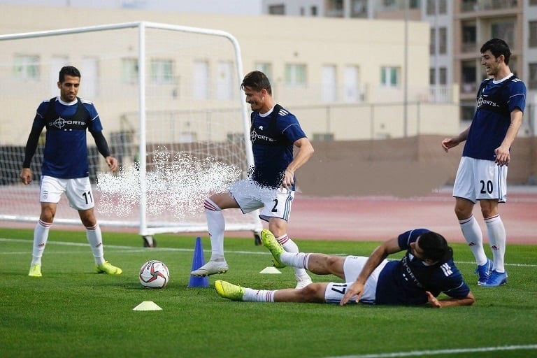 مهاجم تیم ملی تکلی زیر پای هم تیمی اش زد اما خوشبختانه او را مصدوم نکرد.