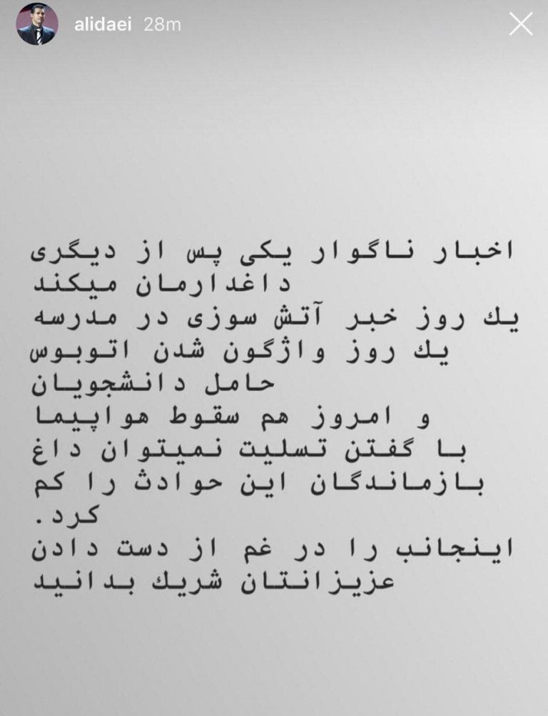 پست جالب و تامل برانگیزه را بعد از حادثه تلخ سقوط هواپیما منتشر کرد.