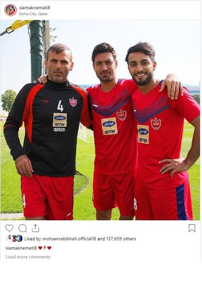 سیامک نعمتی بازیکن تیم فوتبال پرسپولیس پست جدیدی در اینستاگرام خود منتشر کرد. او در این پست تصویری از خودش در کنار حسینی و خلیل زاده منتشر کرده است.