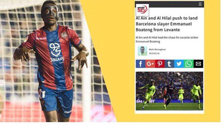 تیم فوتبال باشگاه العین امارات جهت تقویت تیم خودش برای حضورهر چه قوی تر این تیم در جام باشگاه های آسیا قصد به خدمت گرفتن امانوئل بوآتنگ مهاجم ۲۲ ساله حال حاضر لوانته را دارد.