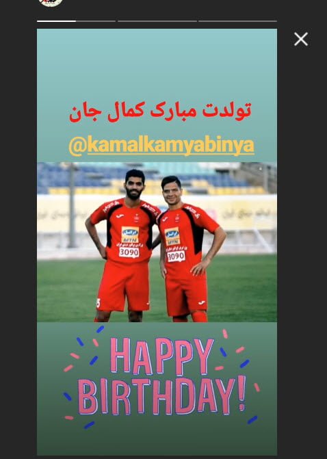 محمد انصاری بازیکن با اخلاق تیم فوتبال پرسپولیس استوری جدیدی را در اینستاگرام خود منتشر کرد . او در این استوری تولد کامیابی نیا را به او تبریک گفت .