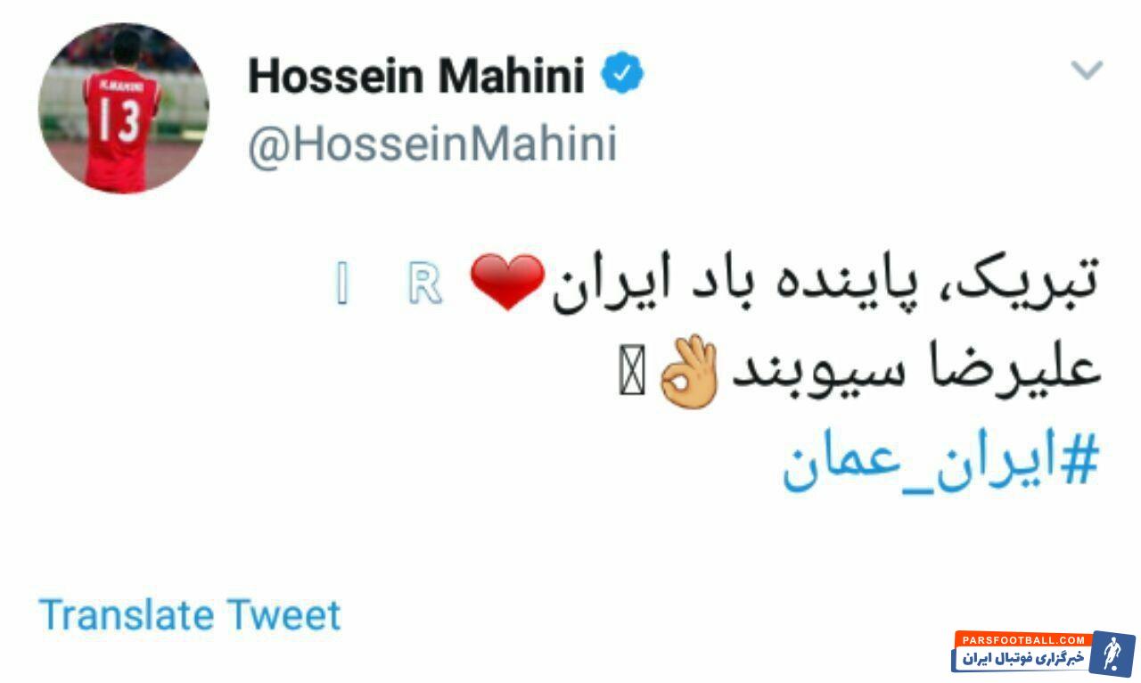 حسین ماهینی که در فضای مجازی با پست‌های توئیتری خود توانسته طرفداران و دنبال کنندگان زیادی برای خود دست و پا کند، پس از پیروزی تیم ملی مقابل عمان در مرحله یک هشتم نهایی جام ملت‌های آسیا، با انتشار پست تازه ای، صفحه توئیتر خود را بروزرسانی کرد.