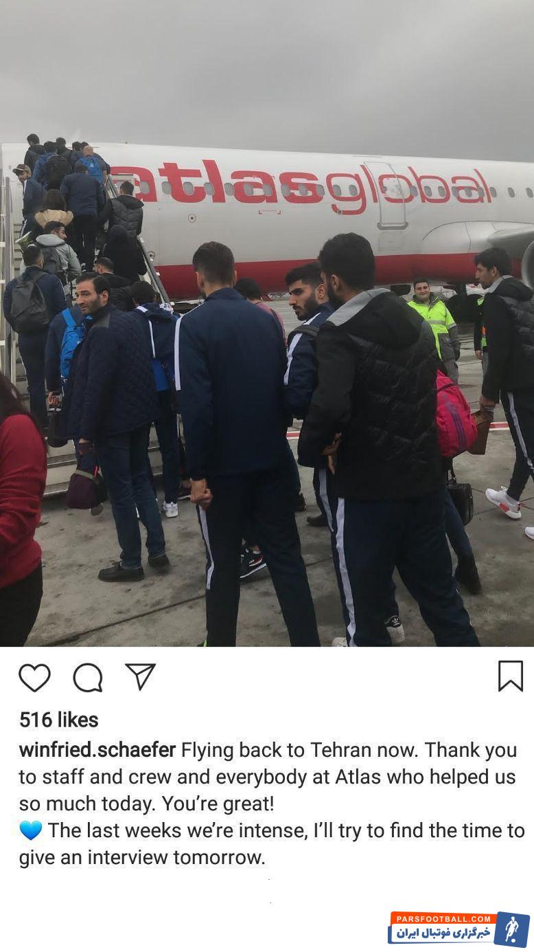 اردوی استقلالی ها در ترکیه که با مشکلات زیاد آغاز شده بود، با مشکلات فراوان نیز به پایان رسید و آبی ها به جای استفاده از یک پرواز مستقیم به سمت تهران، مجبور شدند با دو پرواز به تهران بیایند تا یک مسیر ۳ ساعته برای این تیم بیش از ۱۲ ساعت زمان بر شود.وینفرد شفر در صفحه شخصی خود بی اشاره به مشکلات بازگشت به تهران، پستی را منتشر کرد که کلمات پایانی آن می تواند نشان از روزهای سخت برای مدیران استقلال باشد.
