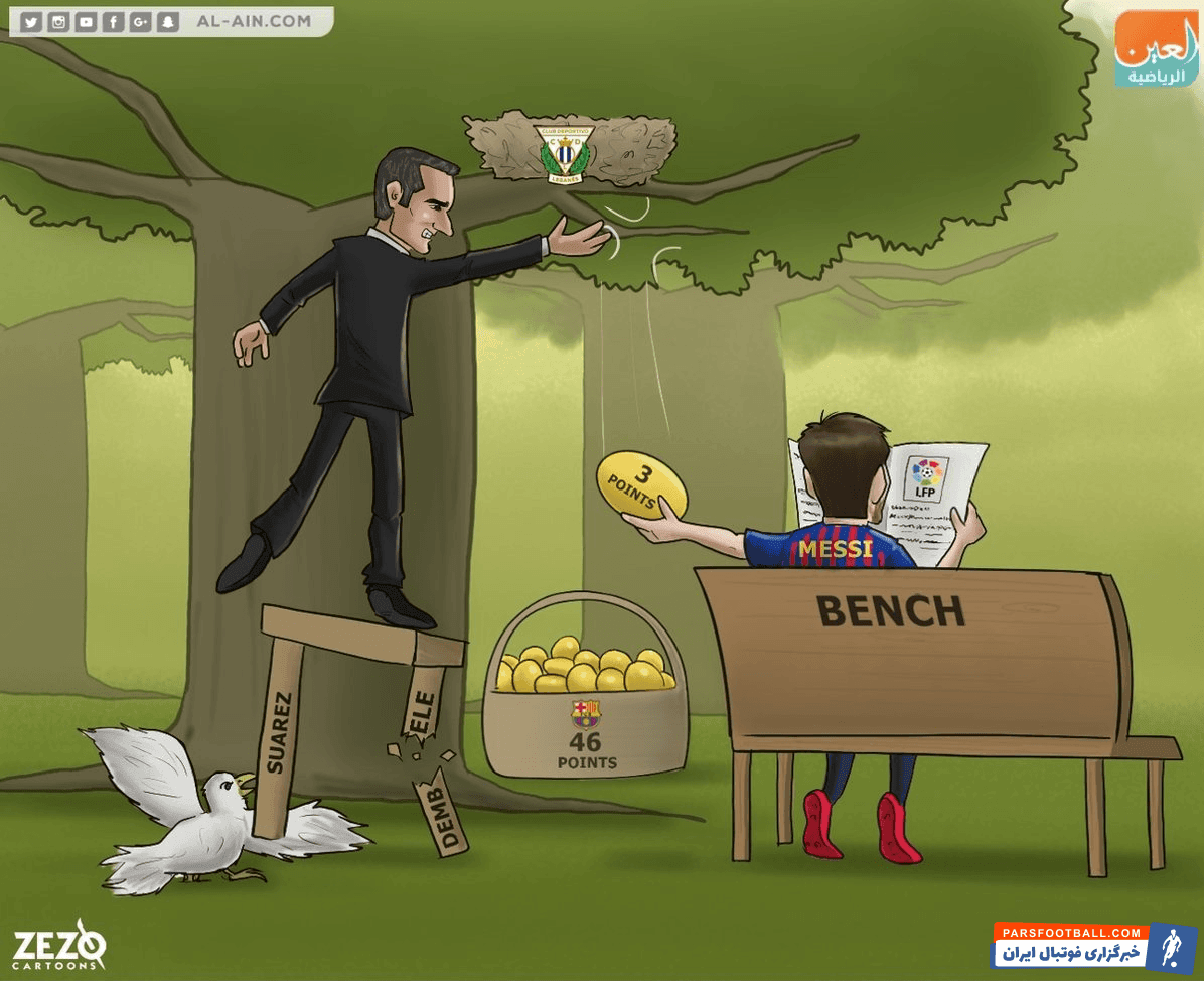کاریکاتور درخشش مسی برابر لگانس در رقابت لالیگا