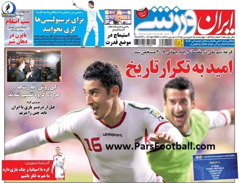نگاهی داریم بر نیم صفحه نخست روزنامه ایران ورزشی، چهارشنبه ۲۵ فروردین.