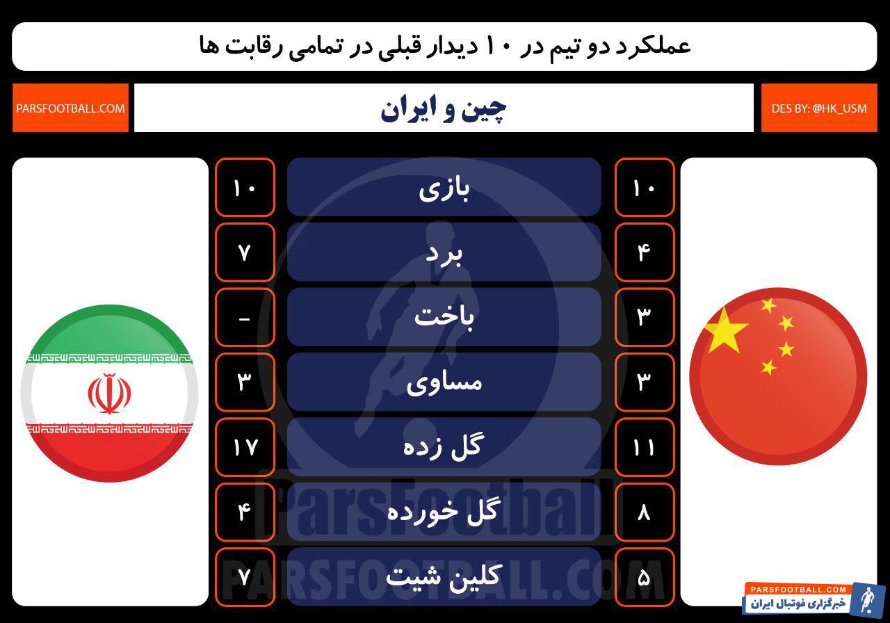 اینفوگرافی؛ آمار دو تیم چین و ایران در ده دیدار اخیر مشخص شد
