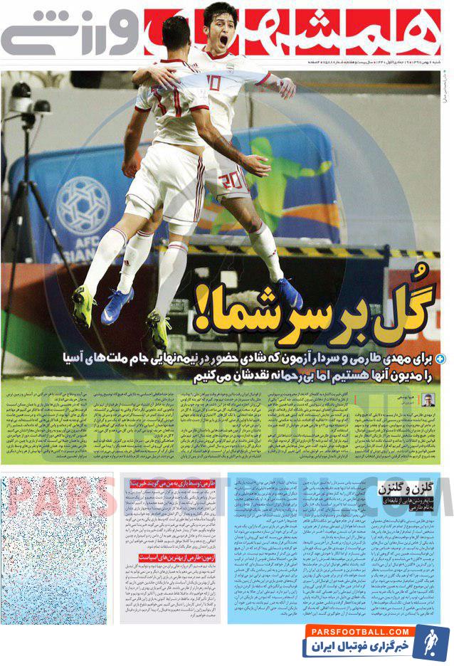 عناوین روزنامه همشهری ورزشی  شنبه ۶ بهمن ماه به شرح زیر است :