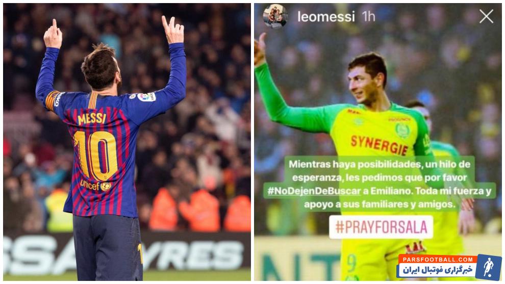 ۷۲ ساعت بعد از حادثه ناگوار خارج شدن هواپیمای امیلیانو سالا از رادار، پلیس اعلام کرد با توجه به عدم یافتن نشانه ای مثبت، جستجو برای یافتن هواپیما به پایان رسیده است. اما امروز تعداد زیادی از ستاره های آرژانتینی دنیای فوتبال از جمله گونسالو ایگواین، سرخیو آگوئرو، نیکولاس اوتامندی، فده فرناندز و ازکوئل گارای از پلیس خواستند تلاش برای یافتن هموطن خود را ادامه دهند و حالا لیونل مسی نیز در صفحه اینستاگرام خود خواست تا زمانی که درصدی امید هم وجود دارد، این عملیات ادامه یابد.