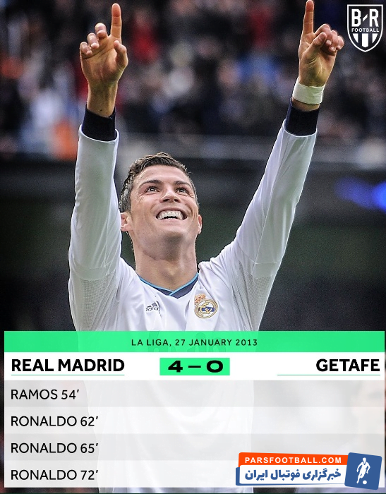 هت تریک رونالدو در سال 2013 در رئال مادرید برابر ختافه در ده دقیقه