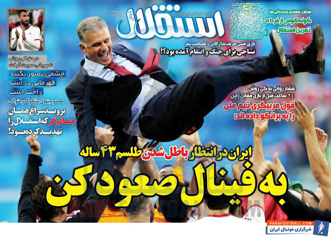 عناوین روزنامه استقلال جوان دوشنبه ۸ بهمن ماه به شرح زیر است :