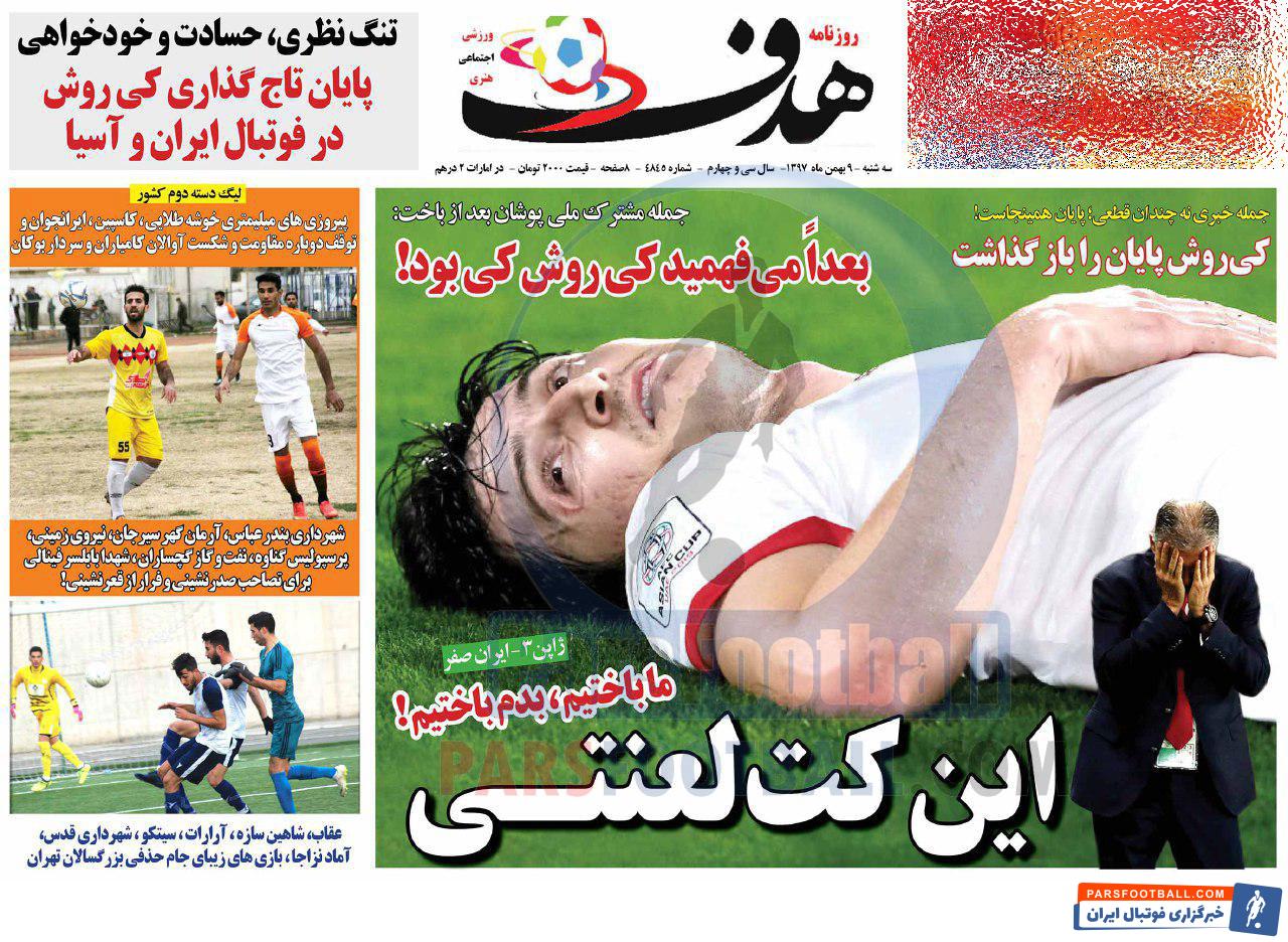 عناوین روزنامه هدف ورزشی سه شنبه ۹ بهمن ماه به شرح زیر است :