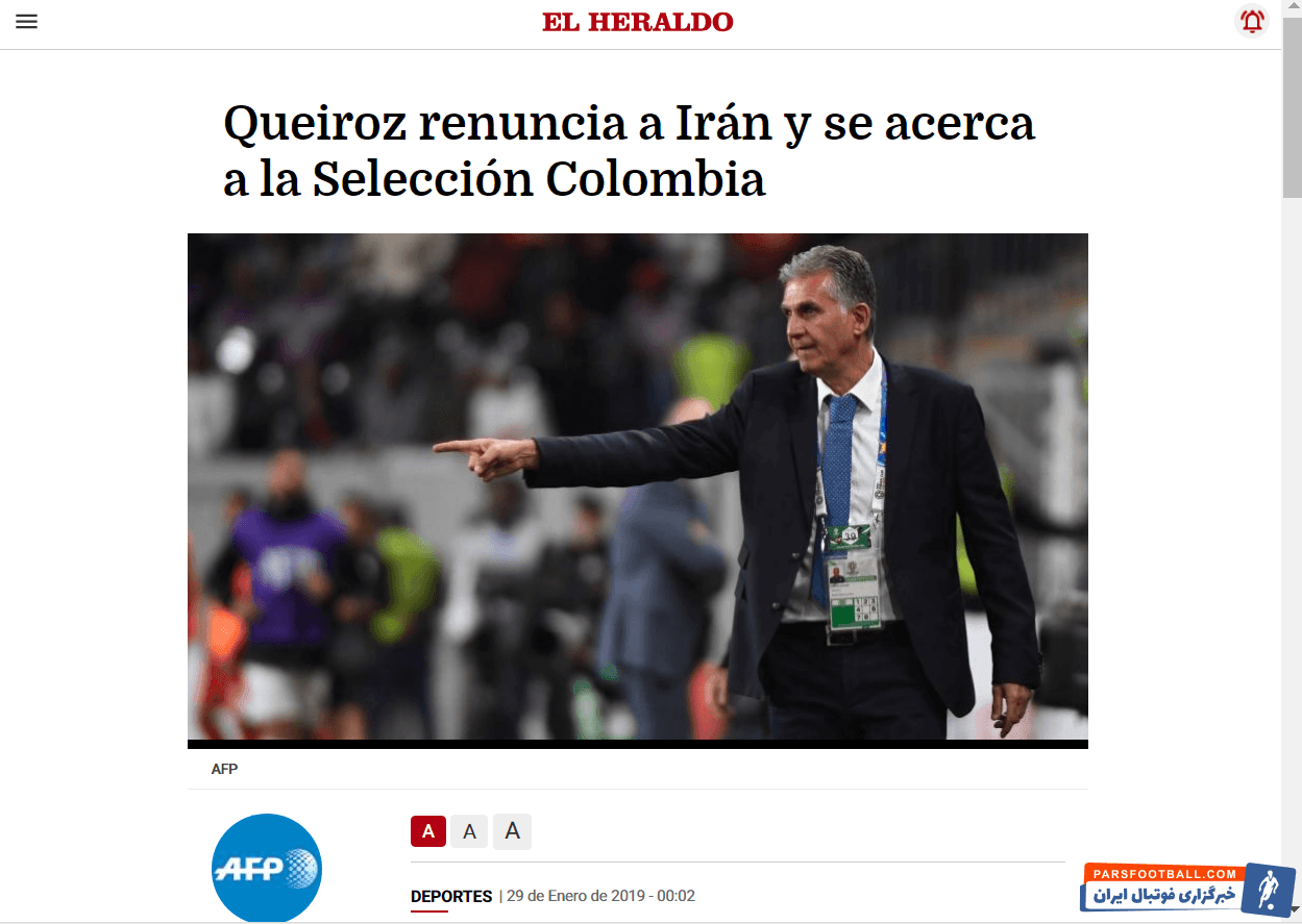 روزنامه کلمبیایی ال هرالدو مدعی شد کارلوس کی‌روش بعد از شکست ایران مقابل ژاپن در نیمه نهایی جام ملتهای آسیا از سرمربی‌گری تیم ملی ایران استعفا داده .