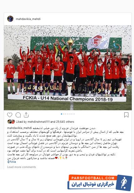 مهدی مهدوی کیا موفقیت فوتبالیست های آکادمی را به آنها تبریک گفت