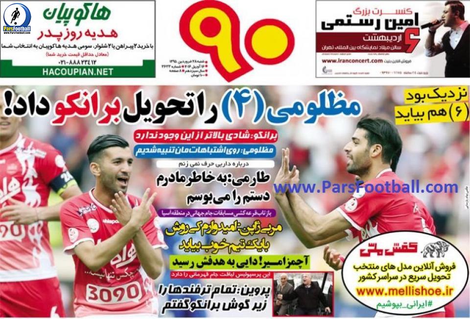 روزنامه نود ، چهارشنبه ۲۵ اسفند ؛ برانکو و گل محمدی از من بهترند