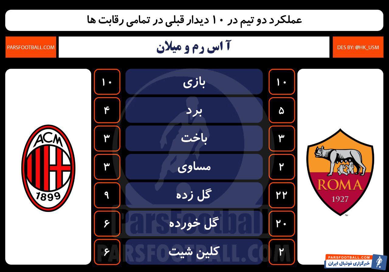 اینفوگرافی اختصاصی؛ نگاهی به عملکرد دو تیم آ اس رم و آث میلان در ده دیدار اخیر