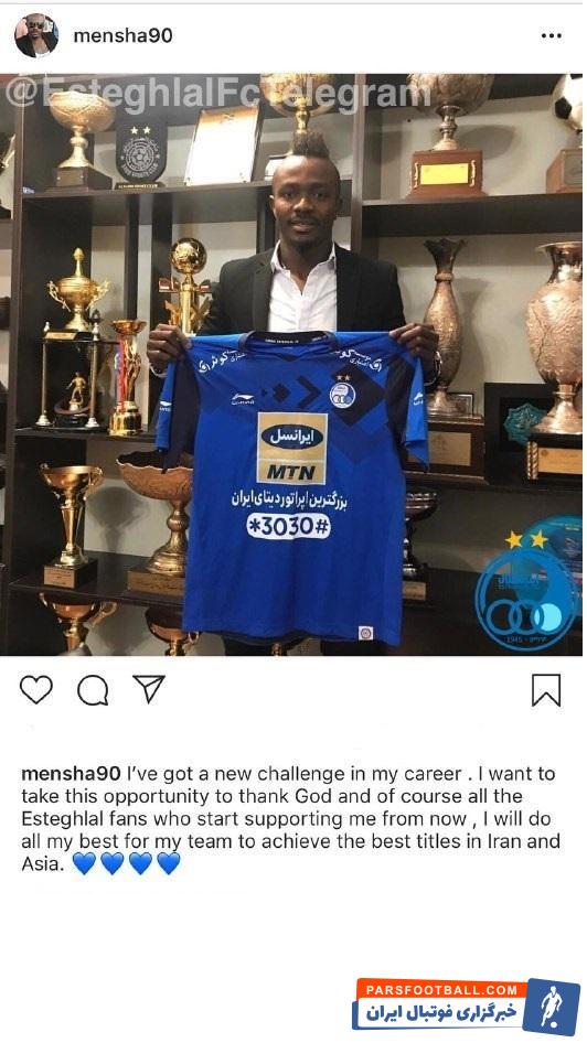 گادوین منشا، مهاجم پیشین باشگاه پرسپولیس به استقلال پیوست و با انتشار تصویری در اینستاگرامش به همراه چهار قلب آبی از این انتقال ابراز خوشنودی نمود.