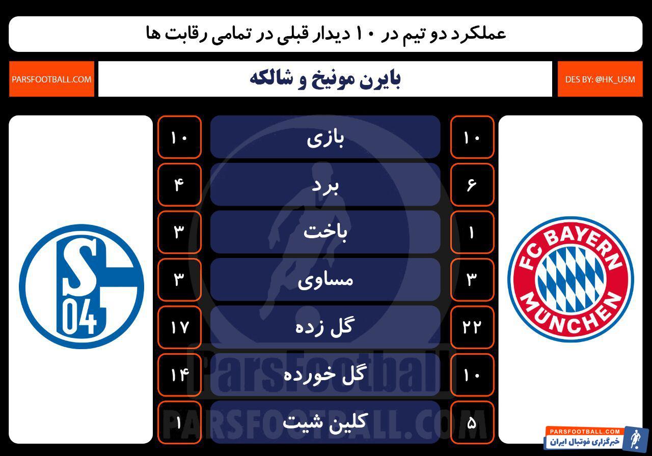 به بهانه دیدار دو تیم بایرن مونیخ و شالکه در رقابت های بوندسلیگا آلمان، به بررسی آمار دو تیم در ده دیدار اخیر می پردازیم.