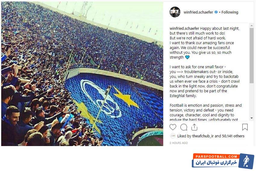 استقلال موفق شد در اولین بازی دور برگشت لیگ برتر با ۴ گل پیکان را شکست دهد. وینفرد شفر از بعضی از استقلالی ها به ویژه اعضای کمیته فنی ناراحت به نظر می رسد . وینفرد شفر  در اینستاگرامش نوشت: