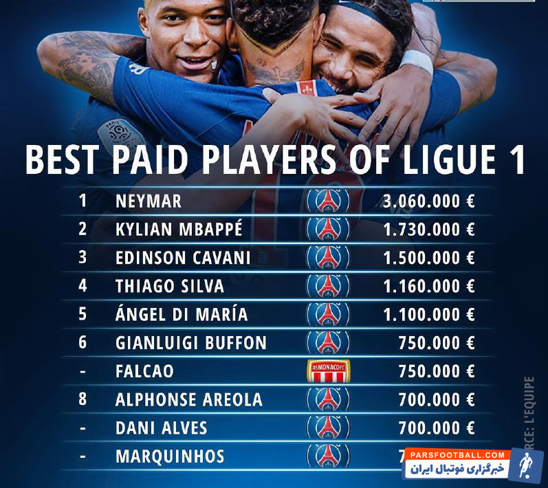 در بین ۱۰ بازیکن پردرآمد لیگ فوتبال فرانسه تنها فالکائو از موناکو در جمع بازیکنان پاریسن ژرمن غریب است.