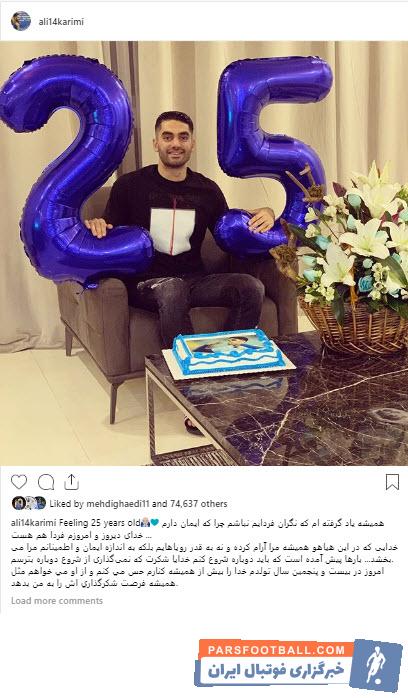 علی کریمی بازیکن تیم فوتبال استقلال تهران به مناسبت تولد خودش پست جدیدی در اینستاگرام خود منتشر کرد. علی کریمی در این پست نوشت :