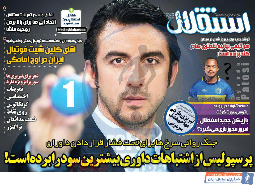 عناوین روزنامه استقلال جوان چهارشنبه ۲۴ بهمن ماه به شرح زیر است :