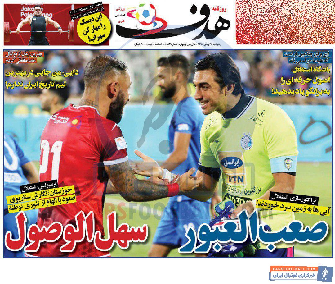 عناوین روزنامه هدف ورزشی پنجشنبه ۲۵ بهمن ماه به شرح زیر است :
