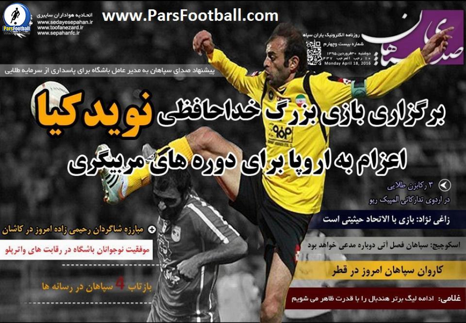روزنامه صدای سپاهان ، یکشنبه ۱ بهمن ؛ برای انتخاب سرمربی وسواس داشته باشید !