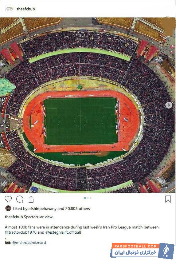 تراکتورسازی جمعه در هفته هجدهم لیگ برتر میزبان استقلال بود و توانست با تک گل اشکان دژاگه پیروز این دیدار شود. ورزشگاه برای این بازی مهم پر از تماشاگر شده بود. به همین خاطر این موضوع از نگاه AFC پنهان نماند و کنفدراسیون فوتبال آسیا در اینستاگرامش به این موضوع پرداخت.