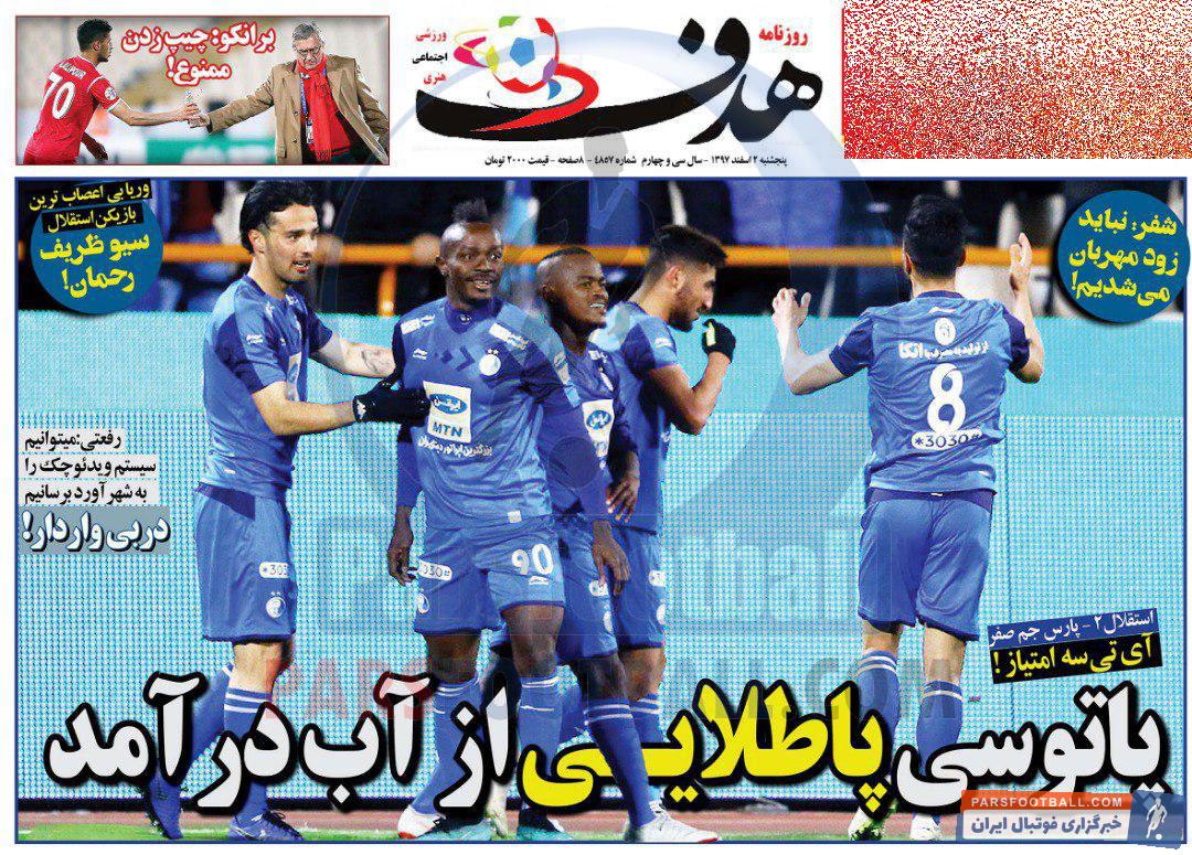 عناوین روزنامه هدف ورزشی پنجشنبه ۲ اسفند ماه به شرح زیر است :