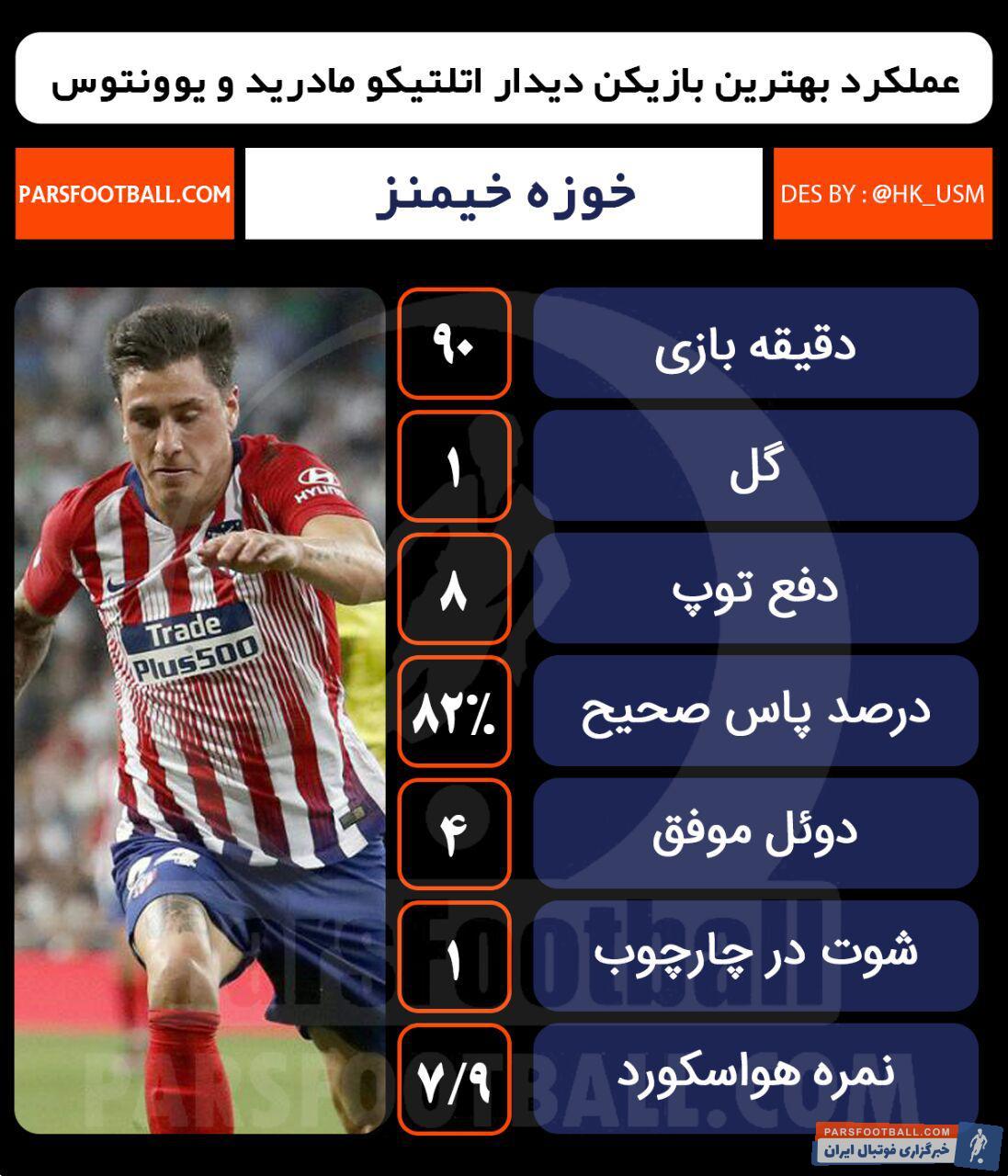 اینفوگرافی اختصاصی؛ نگاهی به عملکرد خوزه خمینز در دیدار اتلتیکومادرید و یوونتوس