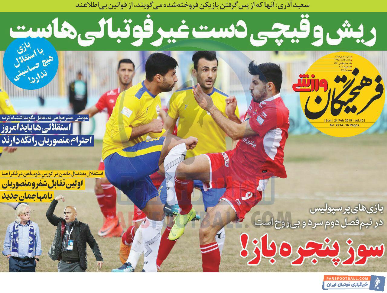 عناوین روزنامه فرهیختگان ورزشی یکشنبه ۵ اسفند ماه به شرح زیر است :