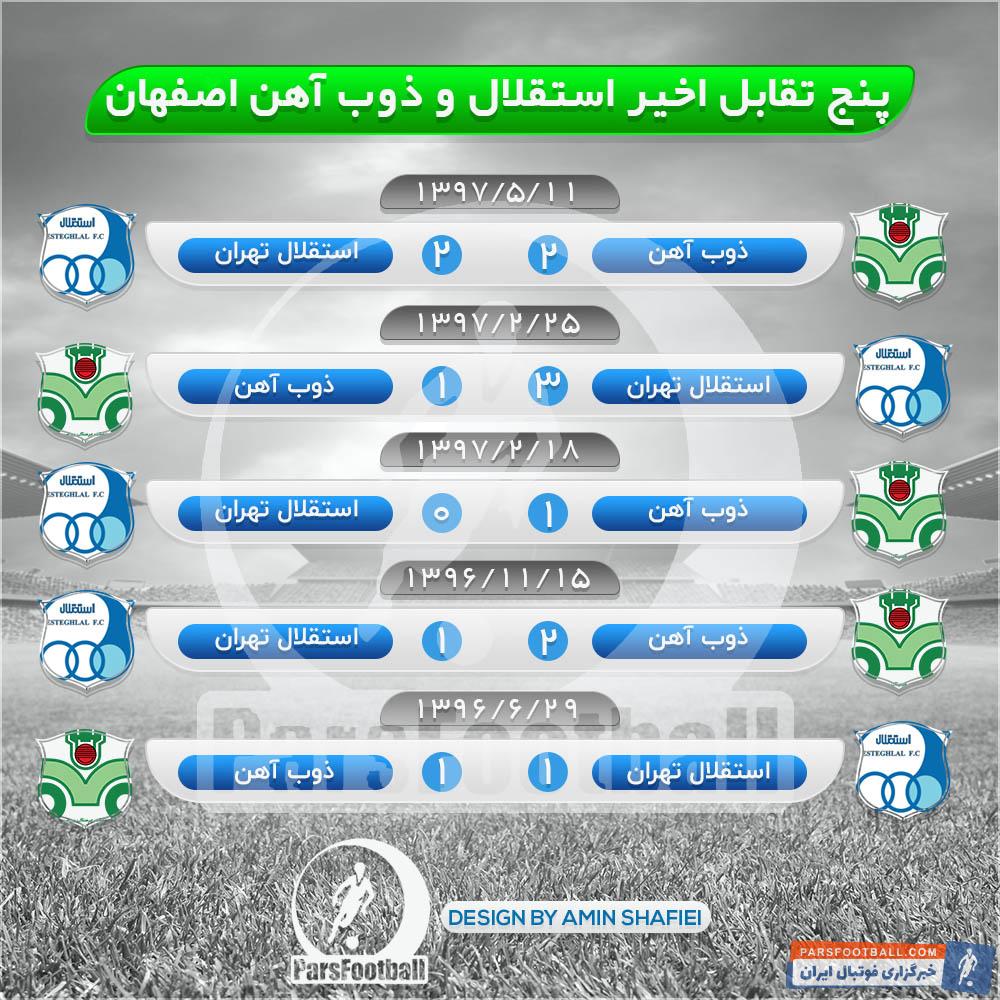 اینفوگرافی؛ نگاهی به نتایج پنج تقابل اخیر استقلال و ذوب آهن