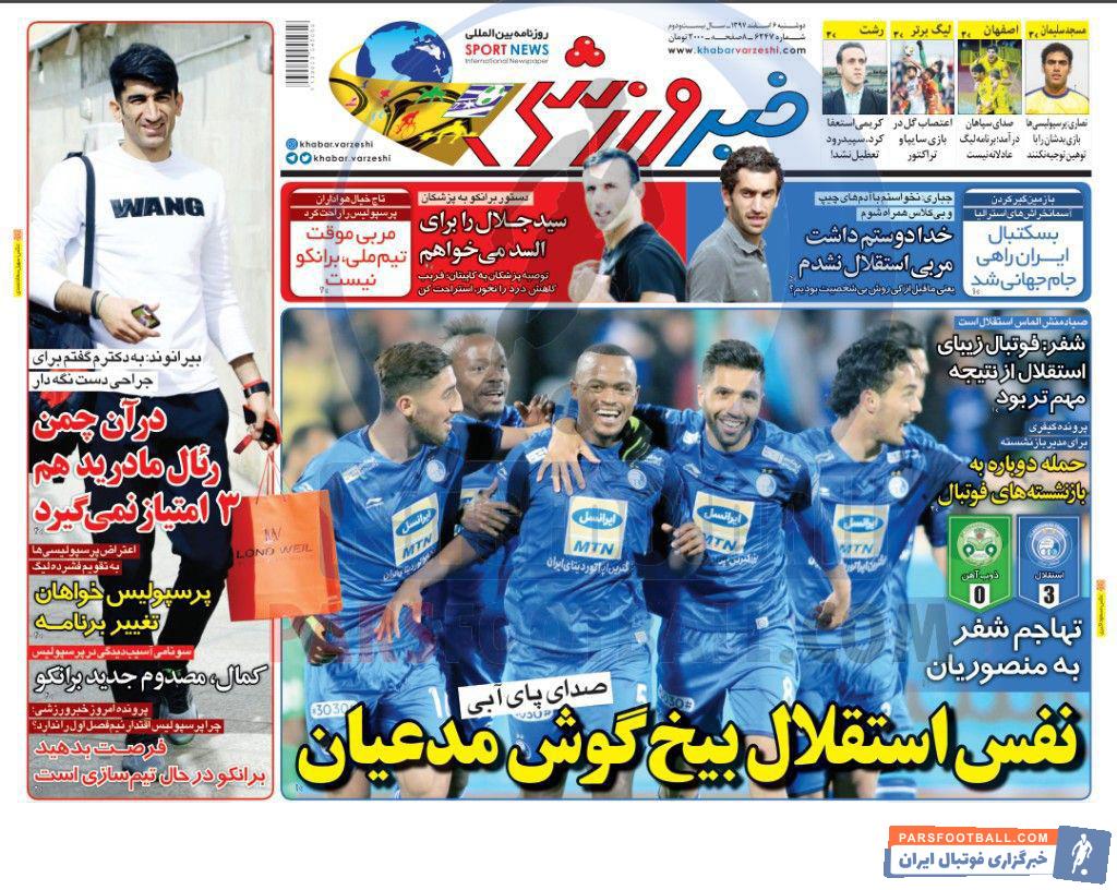 عناوین مهم روزنامه خبر ورزشی دوشنبه ۶ اسفند ماه:
