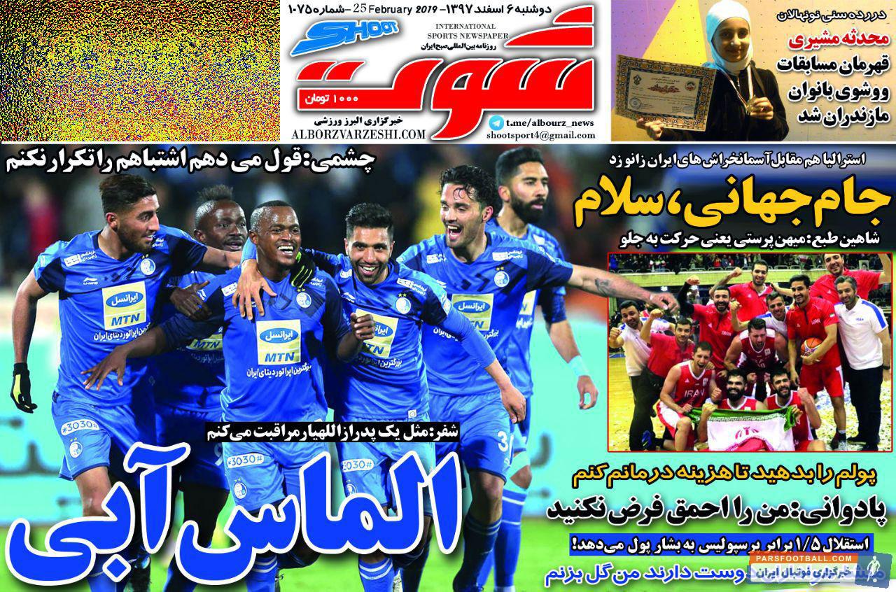 عناوین روزنامه شوت دوشنبه ۶ اسفند ماه به شرح زیر است :