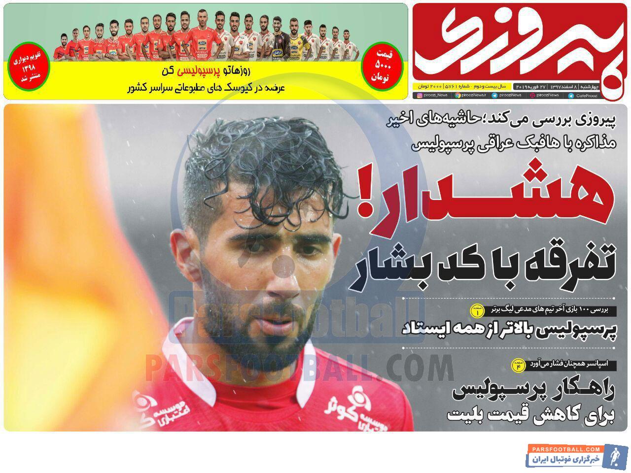 گیشه اخبار داخلی پارس فوتبال همه روزه به بررسی نشریات ورزشی می پردازد. به بررسی روزنامه پیروزی می پردازیم.