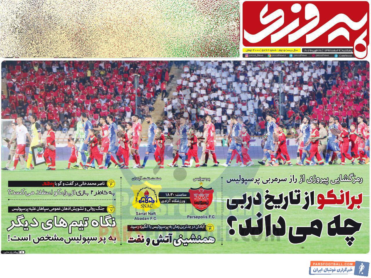 گیشه اخبار داخلی پارس فوتبال همه روزه به بررسی نشریات ورزشی می پردازد. به بررسی روزنامه پیروزی می پردازیم.